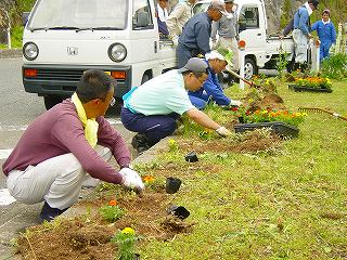 お父さんたちも花を植えてくれました。